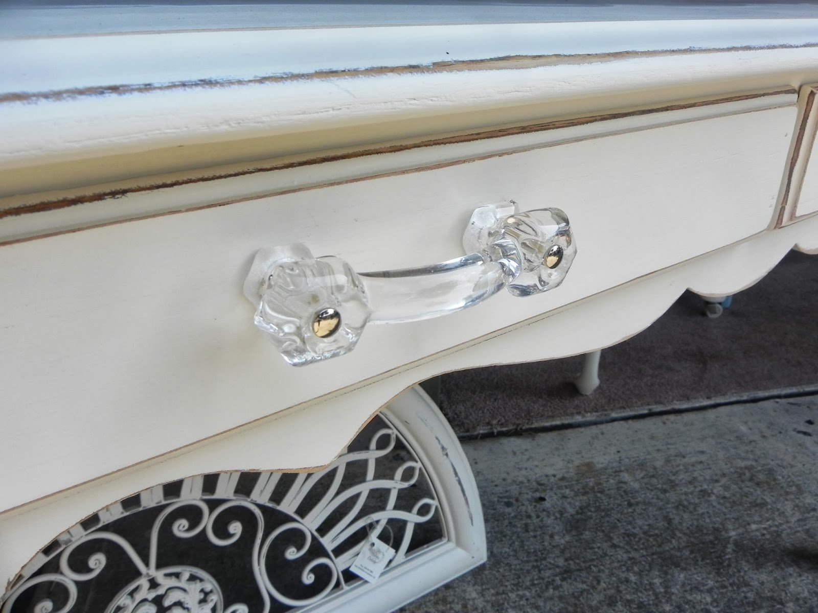 Sadly one of the pulls was broken so I had to come up with something. I don't mind mismatched handles and knobs and the glass ones I chose are still old fashioned and antiquey (I'm pretty sure they're going to add that word to the dictionary) so I'm ok with it, hopefully someone else who wants this look will be also.
